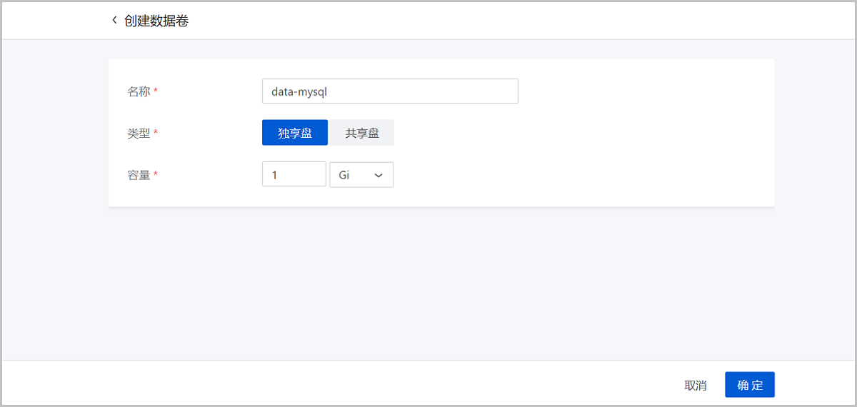 • 名称:本场景下设置为data-mysql