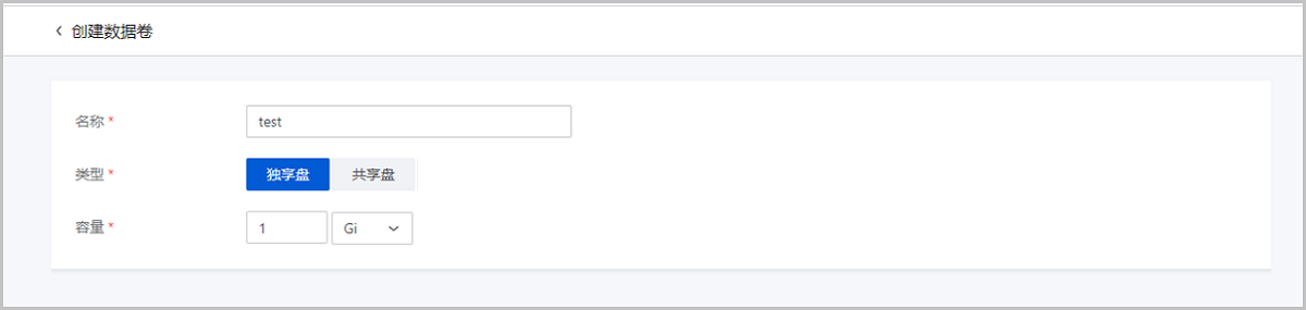 数据卷 (PersistentVolumeClaim) 用于持久化存储工作负载的数据,以便在容器组重启或删除时,数据仍然能够保留。ZStack Cube 双引擎版基于分布式存储,提供独享盘、共享盘两种数据卷类型。