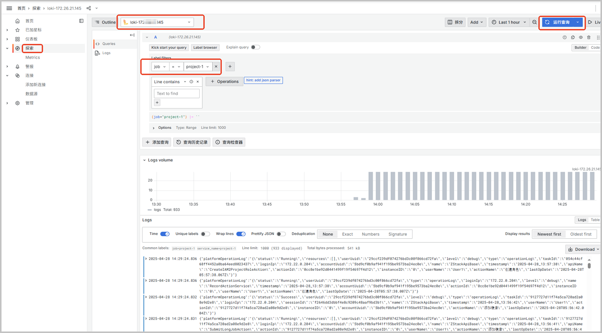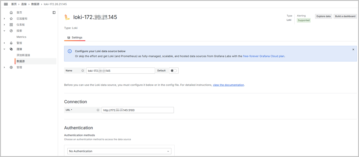 提前准备好用于接收日志信息的日志服务器,本场景准备Loki日志服务器。