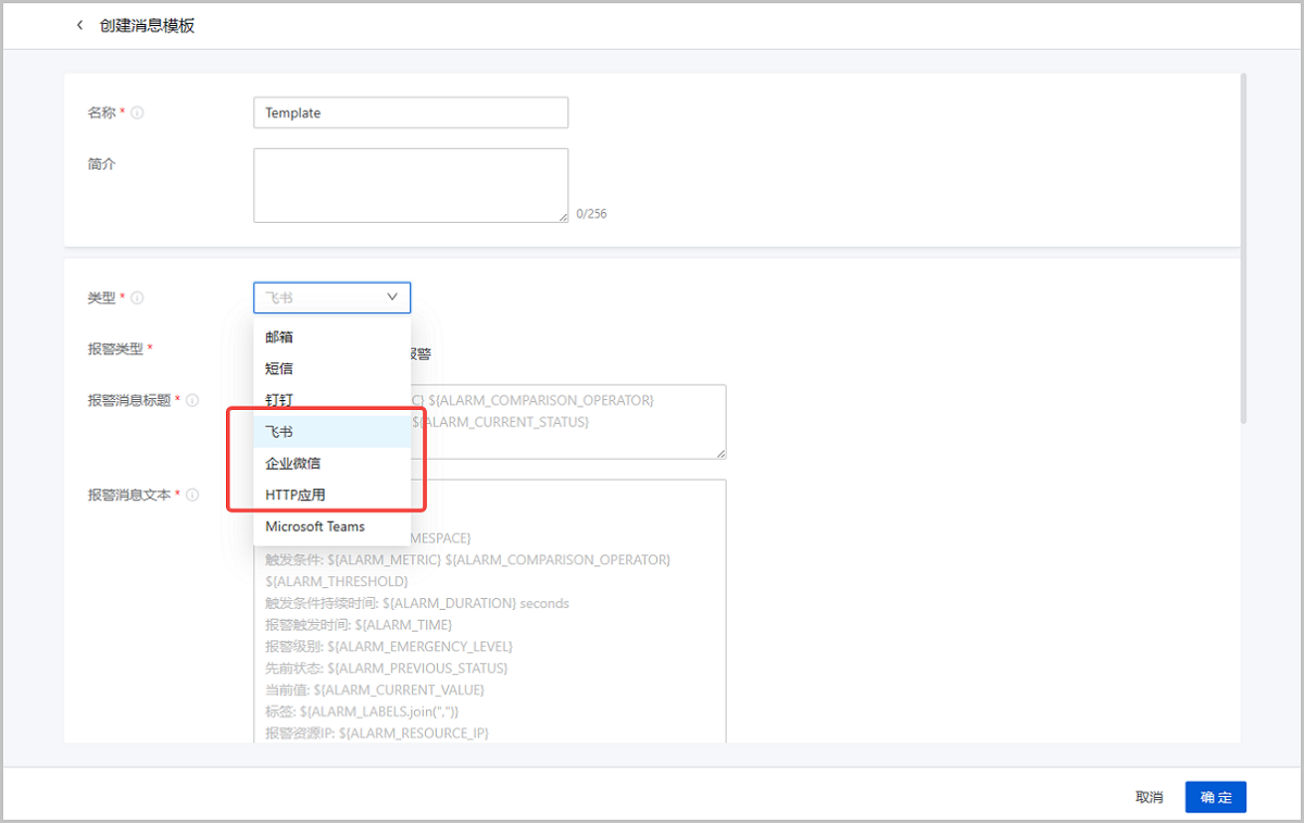 ZStack Cloud 5.0.0开始,支持自定义创建HTTP应用、企业微信和飞书报警消息模板,使HTTP应用/企业微信/飞书消息按统一格式发出。