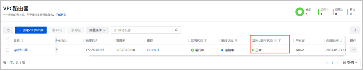云主机/VPC路由器主列表新增QEMU状态并支持筛选