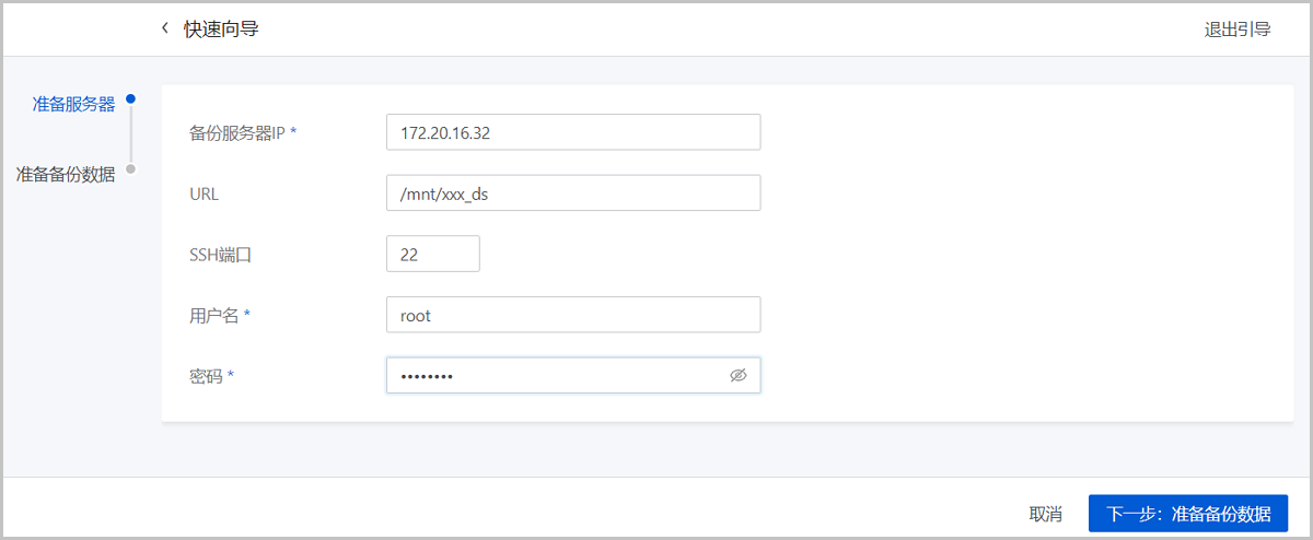 在本地备份数据界面,选中某一本地云主机的备份数据,点击还原,弹出还原备份数据界面。