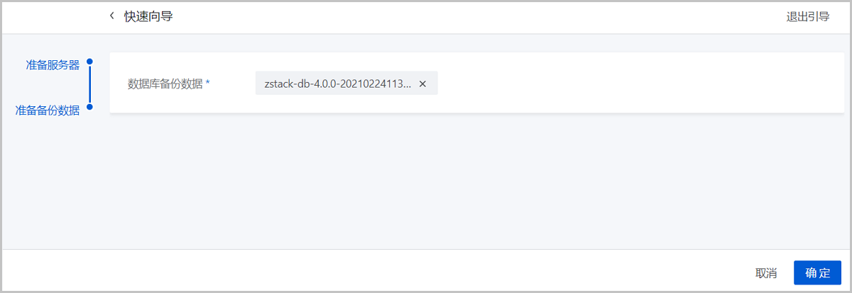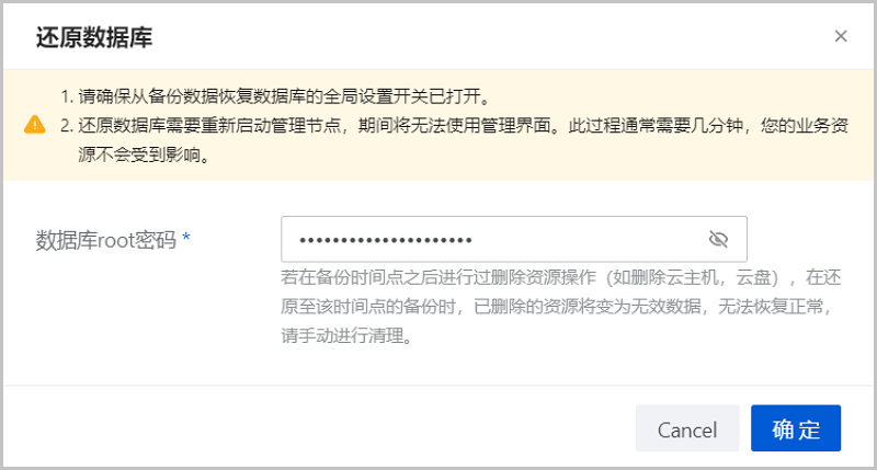 在ZStack Cloud私有云主菜单,点击,将从备份数据恢复数据库选项设置为true,从而允许在有数据的情况下从备份数据中还原数据库。