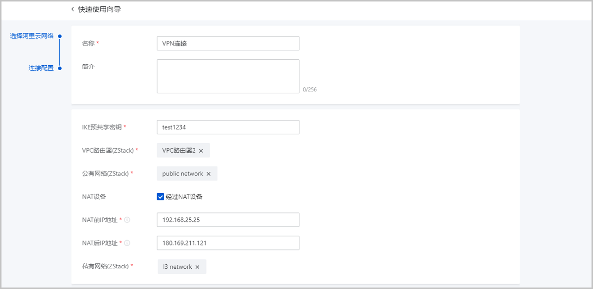 ZStack Cloud支持IPsec VPN方式实现本地VPC网络与阿里云VPC网络的互通。