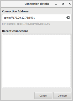 打开Spice客户端,按照spice://hostip:port格式输入地址,登录控制台。如图 3所示: