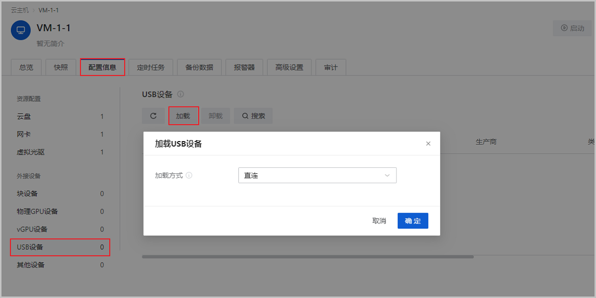 • 加载云主机:将USB设备直接透传给云主机使用。