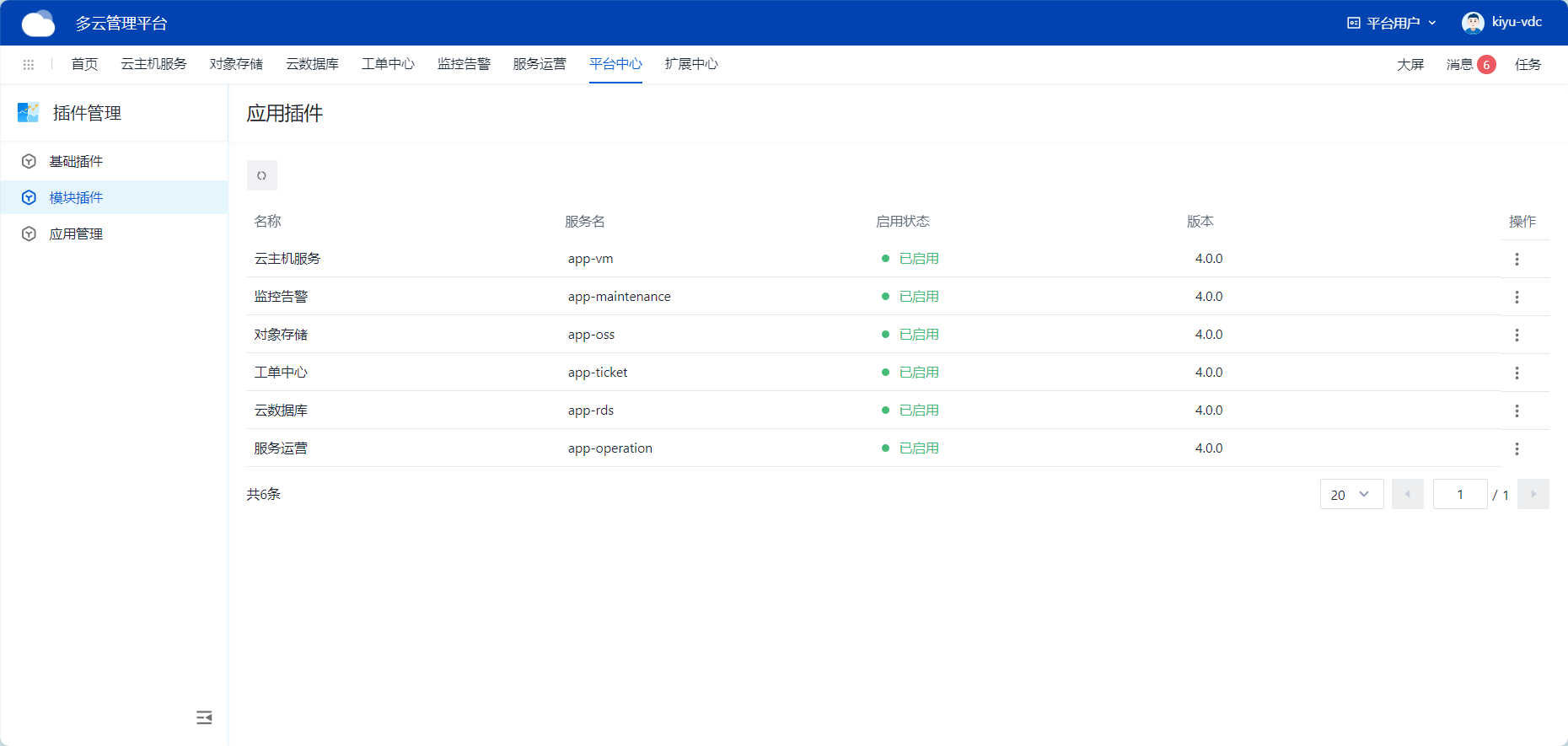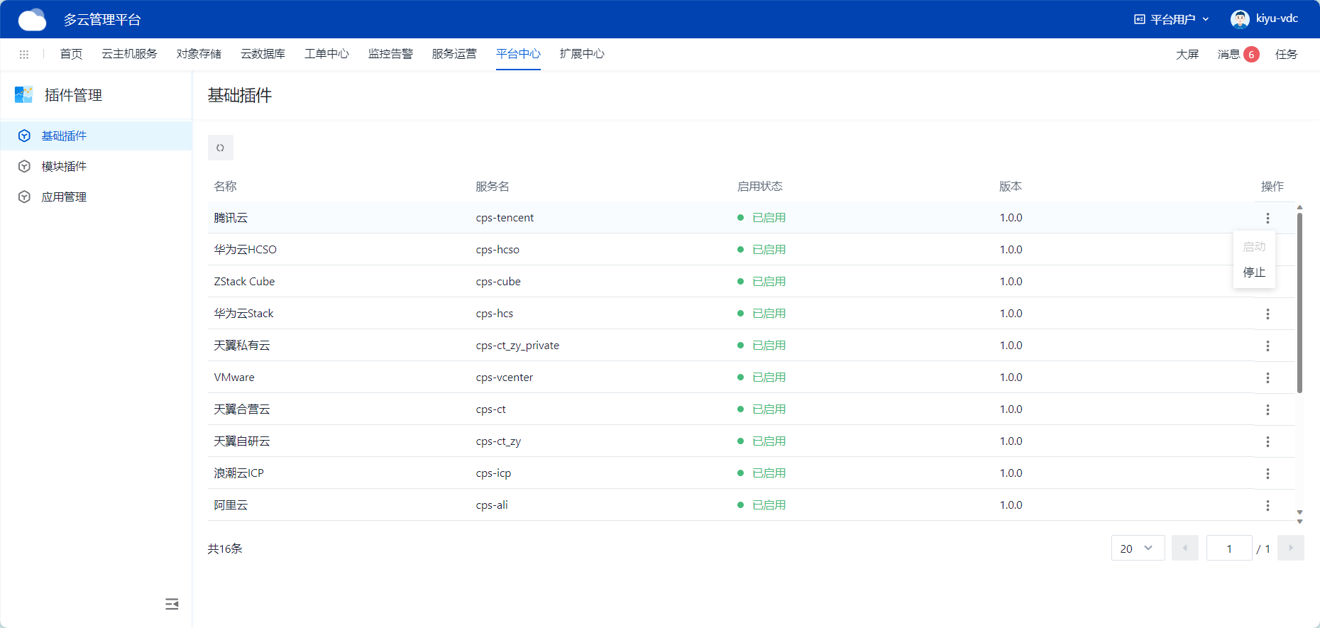 根据当前云平台插件,状态显示“已启用”则当前云平台相关功能可使用。