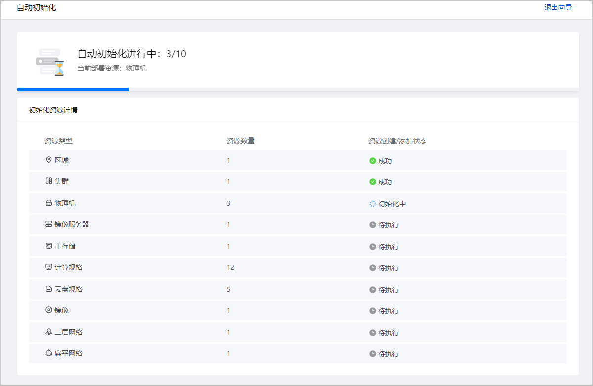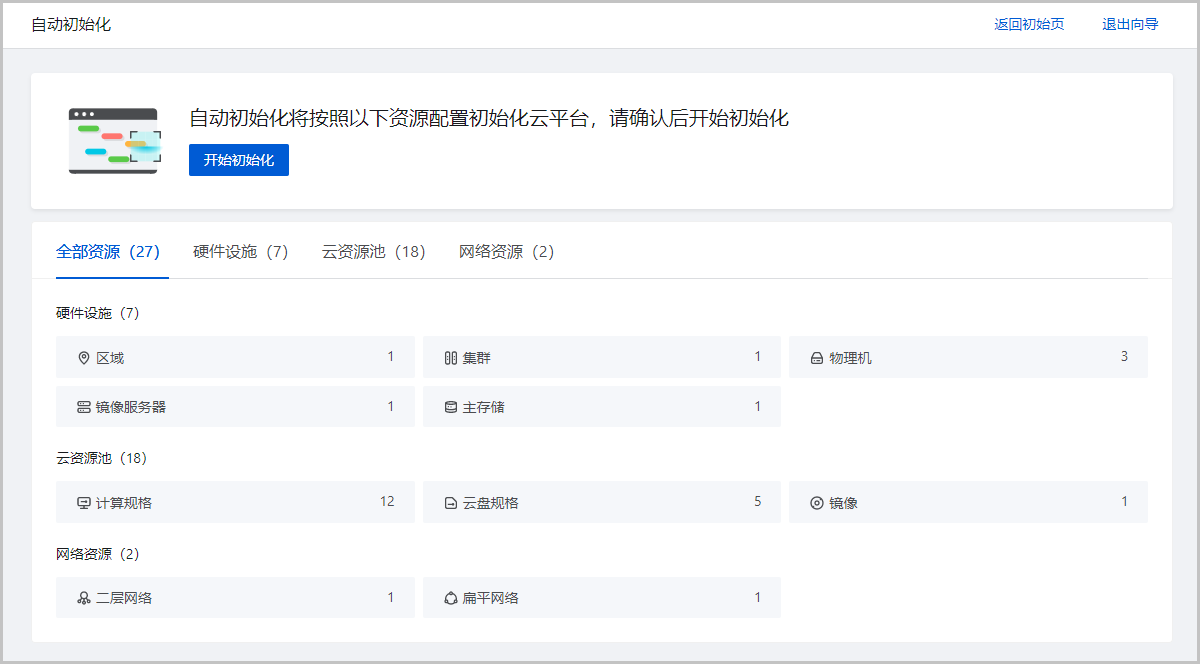 若在部署环境时未配置业务网络,自动初始化流程不会创建二层网络和三层网络,需手动进行创建。