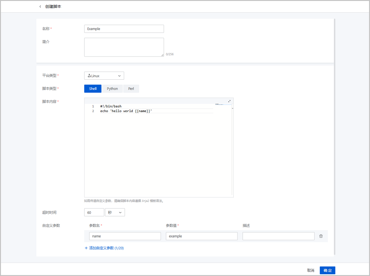 在ZStack Cube 旗舰版主菜单,点击。在脚本库界面,点击创建脚本,弹出创建脚本界面。