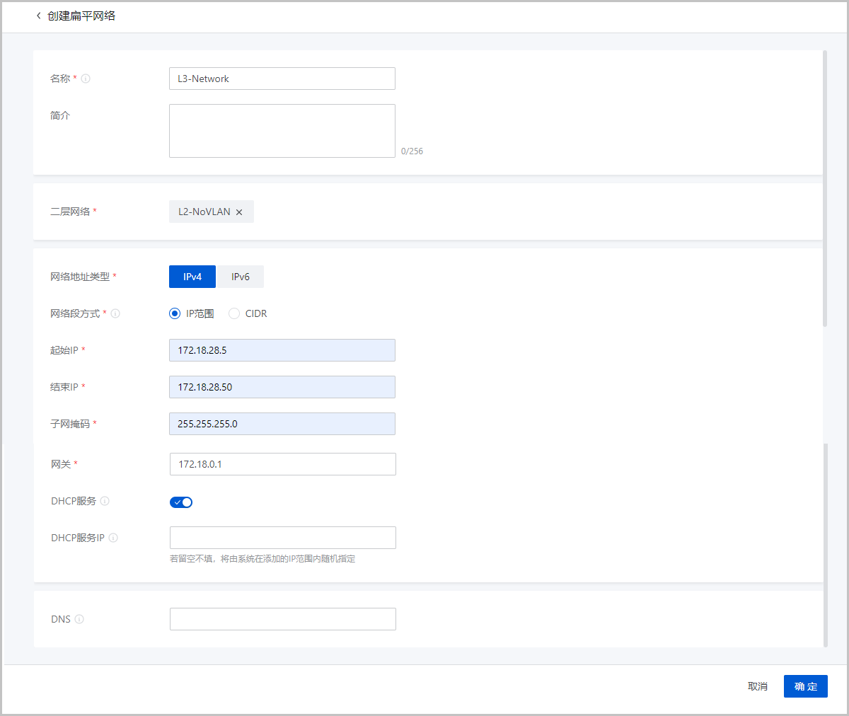 若在部署环境时未配置业务网络,自动初始化流程不会创建二层网络和三层网络,需手动进行创建。