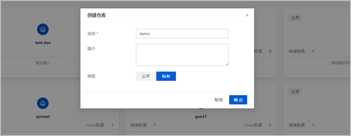 | 删除仓库 | 将本地仓库删除。 说明: 删除本地仓库需要先删除仓库中的所有镜像和Chart部署包。 |