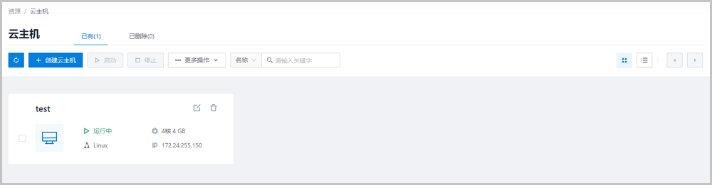 云主机:运行在物理机上的虚拟机实例,具有独立的IP地址,可以访问公共网络,运行应用服务,是ZStack Mini的核心组成部分。
