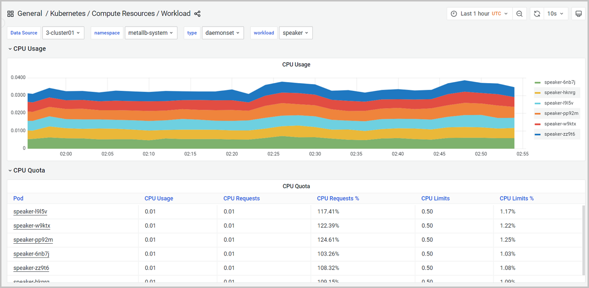 进入Kubernetes / Compute Resources / Workload监控面板,可查看单个工作负载资源使用情况。