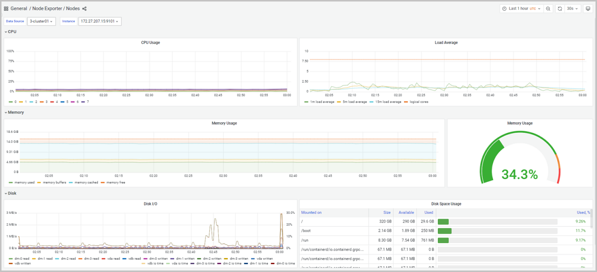进入Nodes监控面板,可查看单台节点CPU、内存、磁盘、网络资源使用情况。