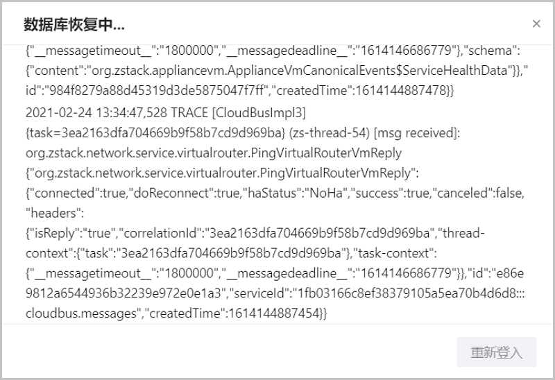 在ZStack Cloud私有云主菜单,点击,将从备份数据恢复数据库选项设置为true,从而允许在有数据的情况下从备份数据中还原数据库。