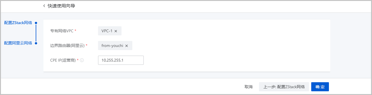 ZStack Cloud支持阿里云高速通道方式实现本地VPC网络与阿里云VPC网络的互通。